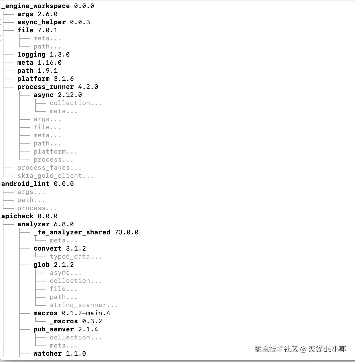 另外,通过 dart pub deps 也可以更清晰看到整个 workspace 的依赖关系,也可以更好管理和同步依赖,结合 monorepo 结构或者 melos 等工具的能力,会让整个项目更直观可控: