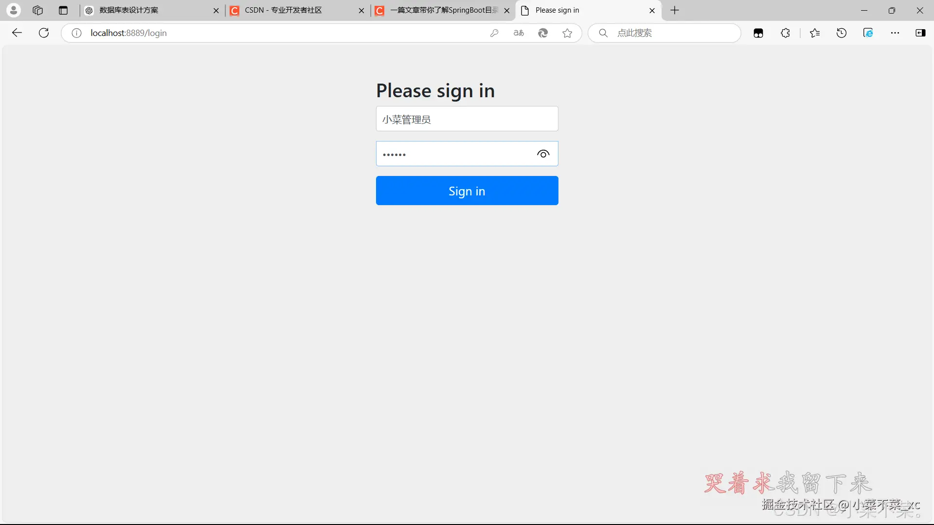 用户名输入:小菜管理员,密码输入123456