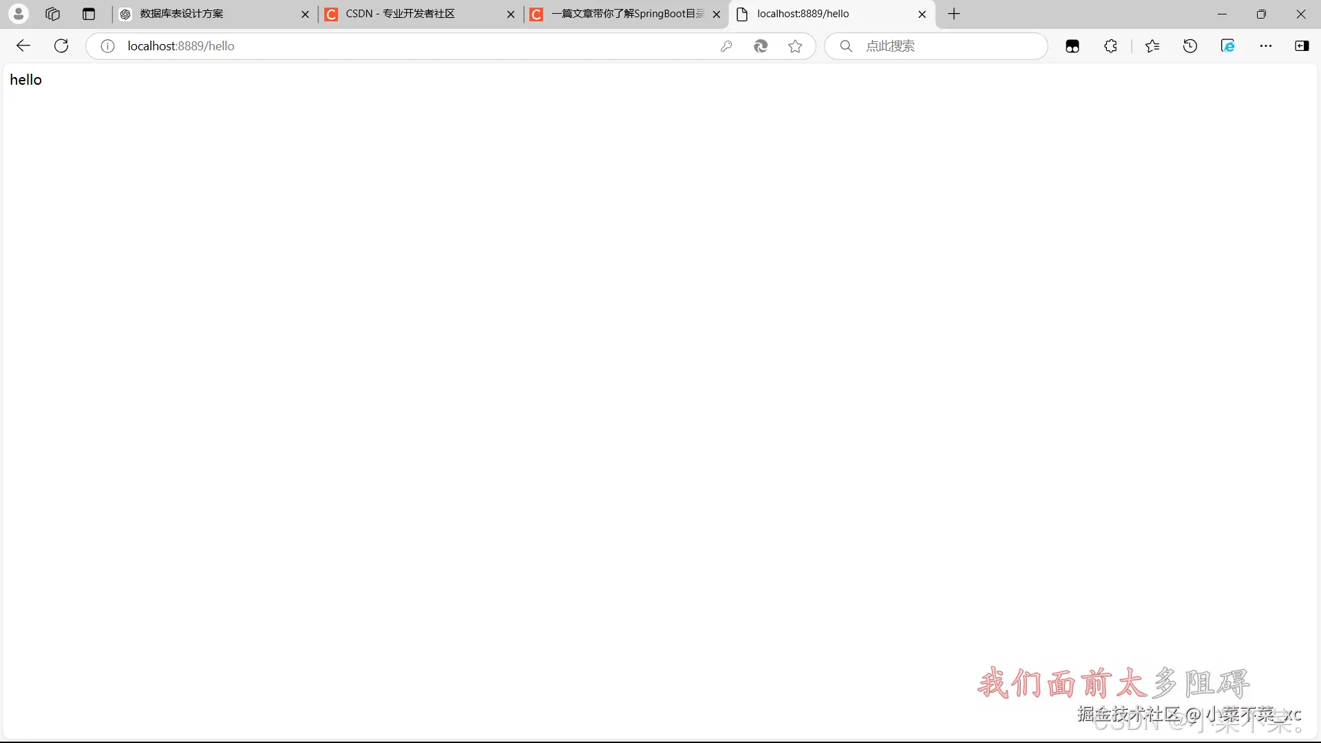 好,现在配置得差不多了,启动项目,我们先去浏览器访问一下