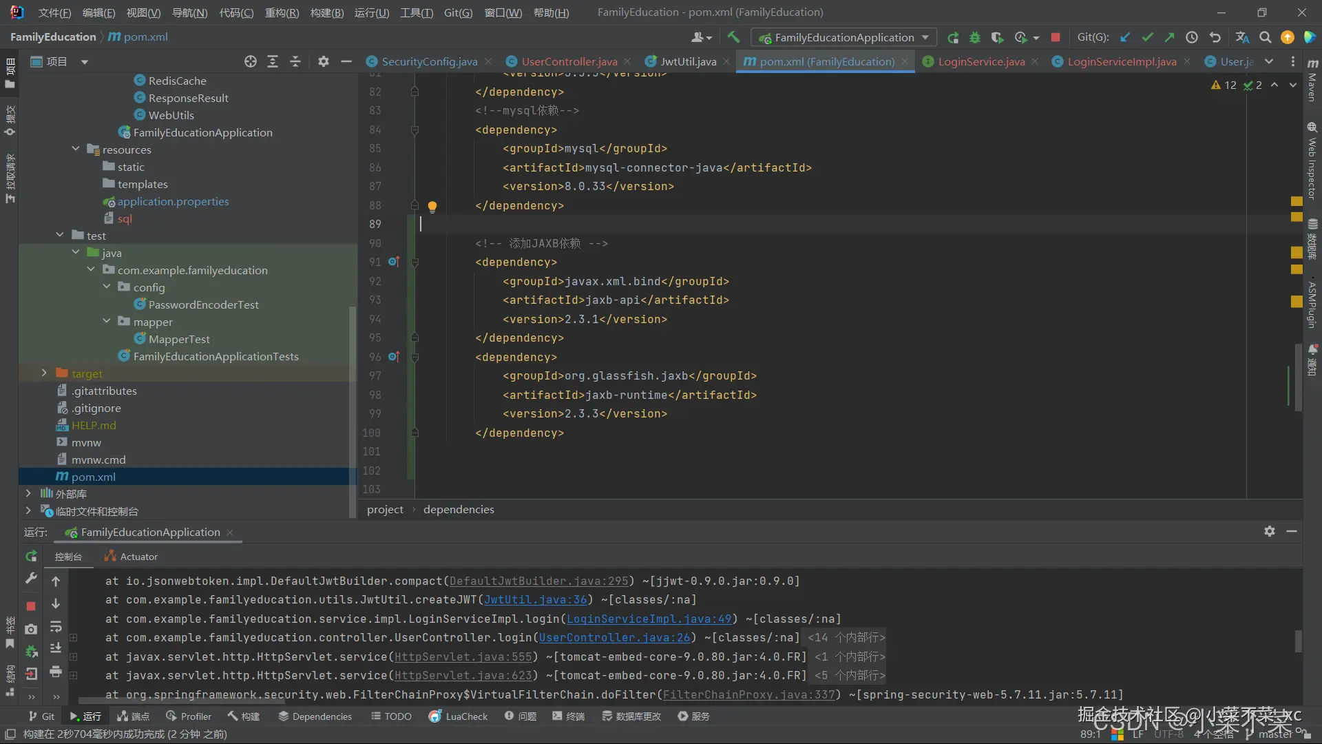 检查过后发现是依赖错误,这两个依赖是为了在 Java 9 及以上版本中补充 JAXB 功能,因为从 Java 9 开始,JAXB 库被从 JDK 中移除。这两个依赖的作用是: