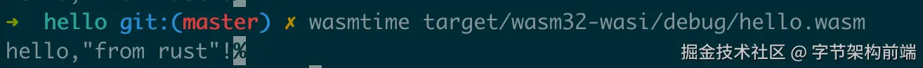 通过以上命令,可快速构建出 target/wasm32-wasi/debug/hello.wasm文件,为了在非浏览器环境运行 webAssemlby 文件,可通过 Bytecode Alliance 推出的 wasmtime runtime 来运行 wasm。