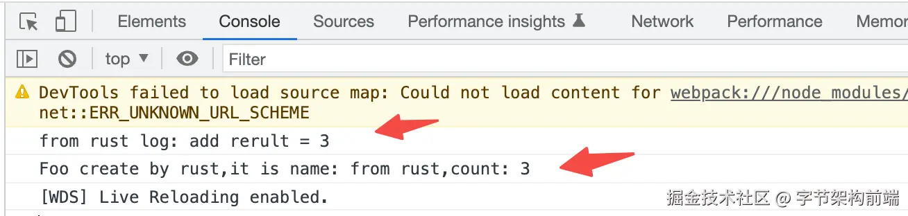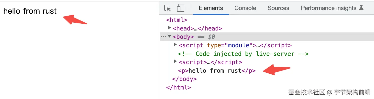 在终端,先执行 npm i 之后,运行 npm run serve ,打开 http://localhost:8080/ ,发现 rust 导出的函数在浏览器上立即生效,至此发 JS 运行 Rust 函数流程还是挺简单的。