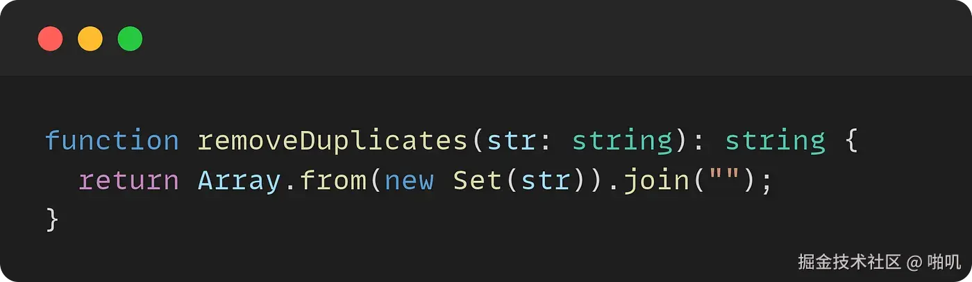 解释:集合确保所有字符都是唯一的,然后使用 join() 方法形成最终的字符串。