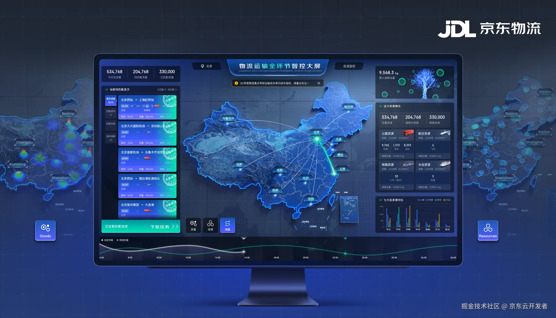 通过智能货量和资源分布预测,调度人员可以提前预知运营情况,提前联系准备资源。在自动派车时,算法综合时效、碳排放、天气等因素,打破单一资源类型限制,实现对车辆、飞机、火车、轮船等运输资源的统一调度。