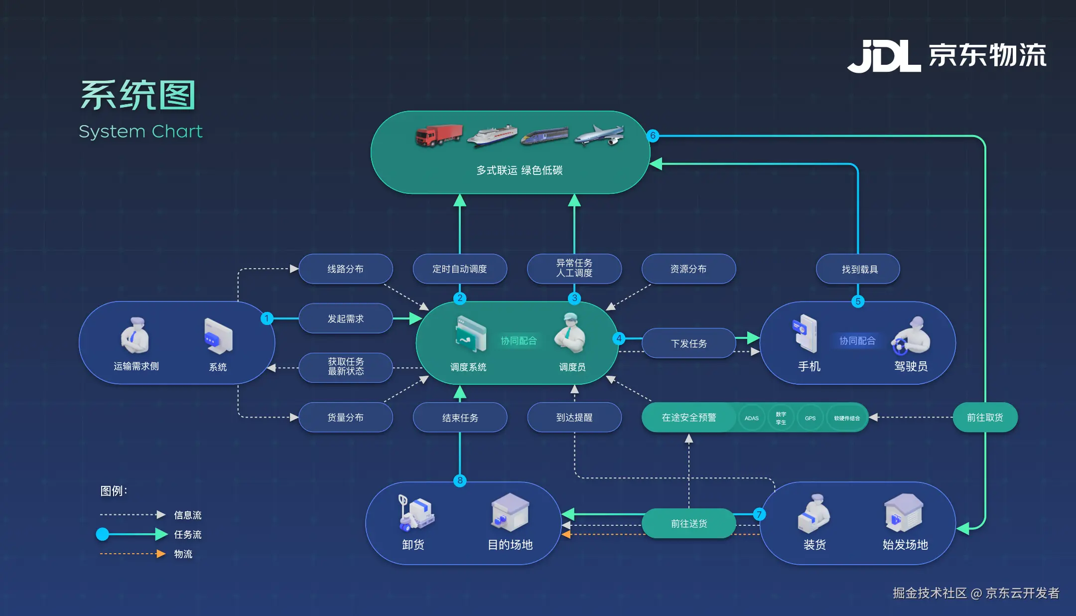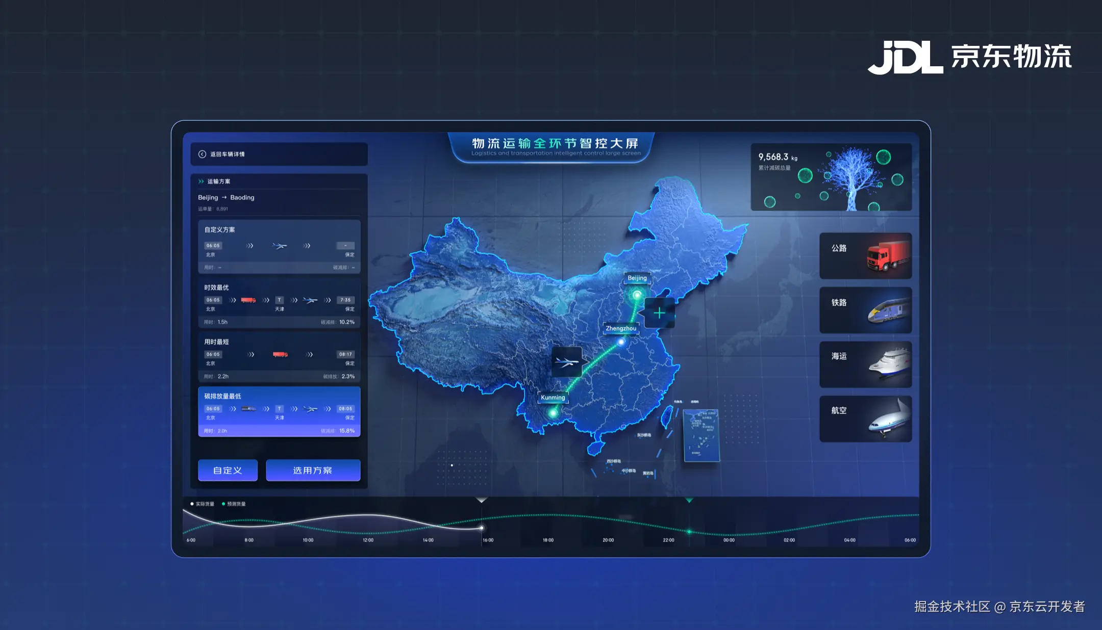 •传统物流只能对单一资源进行调度,缺乏对资源的有机组合。发力点:整合公、铁、空、水多种运输资源统一调度,降低运输的碳排放量,推动绿色物流高质量发展。