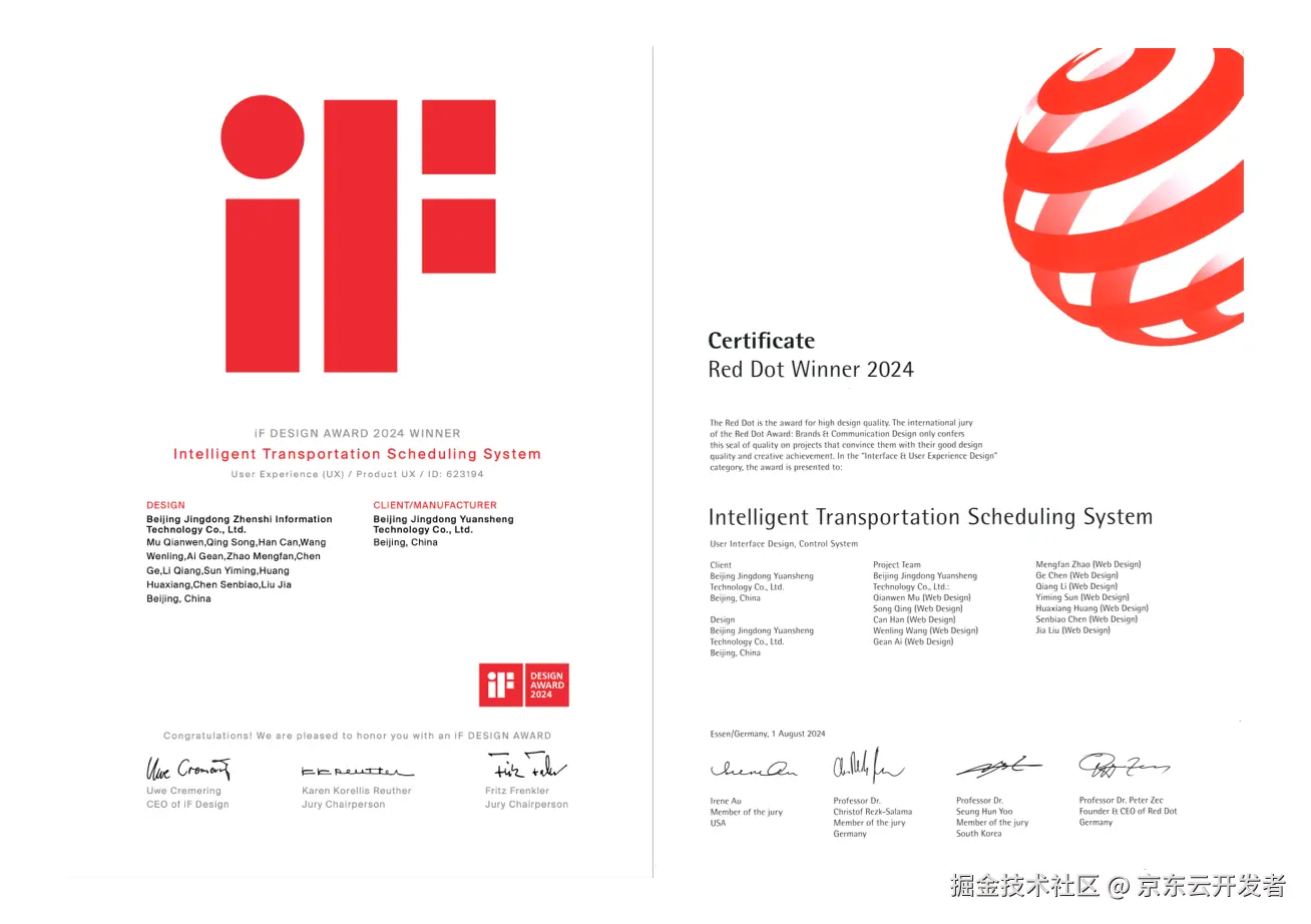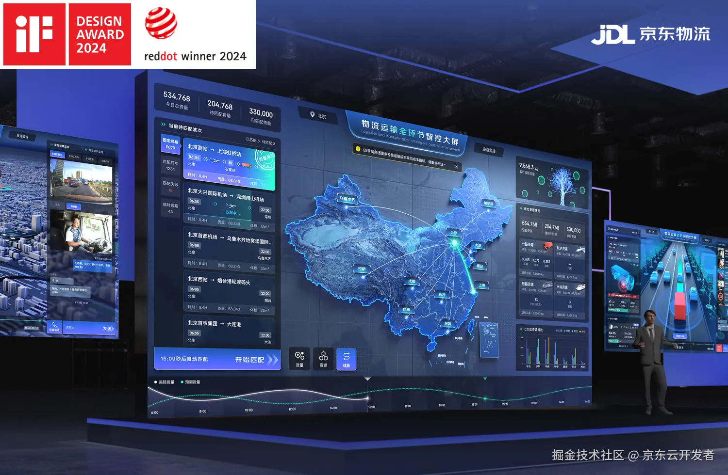 京东集团企业文化升级后,「以技术为本,让生活更美好」成为京东人的使命,在「创新」价值观引导下,设计师基于对物流业务领域持续深耕,自驱发起智能调度解决方案的创新思考,推演得到智能物流运输调度系统概念方案,经过投稿先后获得设计领域国际影响力较高的IF和红点大奖,设计质量得到国际认可。