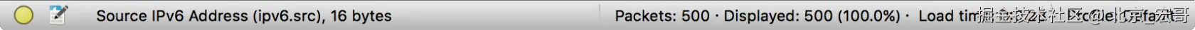 TIP 括号之间的值(在此示例中为 “ipv6.src”)是所选项目的显示过滤器字段。通过选择不同的数据包详细信息项,您可以更加熟悉显示过滤器字段。 带显示过滤器消息的状态栏