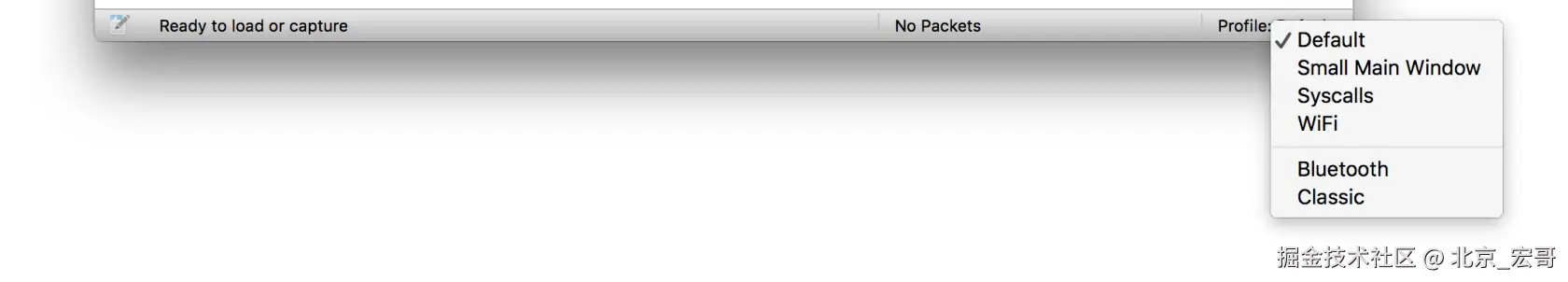 通常,左侧将显示与上下文相关的信息,中间部分将显示有关当前捕获文件的信息,而右侧将显示所选的配置文件。在文本区域之间拖动手柄以更改大小。