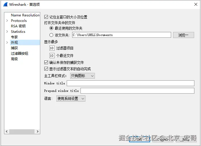 - 协议配置,非常重要,wireshark实际就是分析协议的工具,协议的呈现分析有时需要做选项配置,这块是一个重点