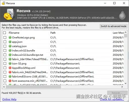 优点:软件所占内存小、恢复文件类型丰富、全免费