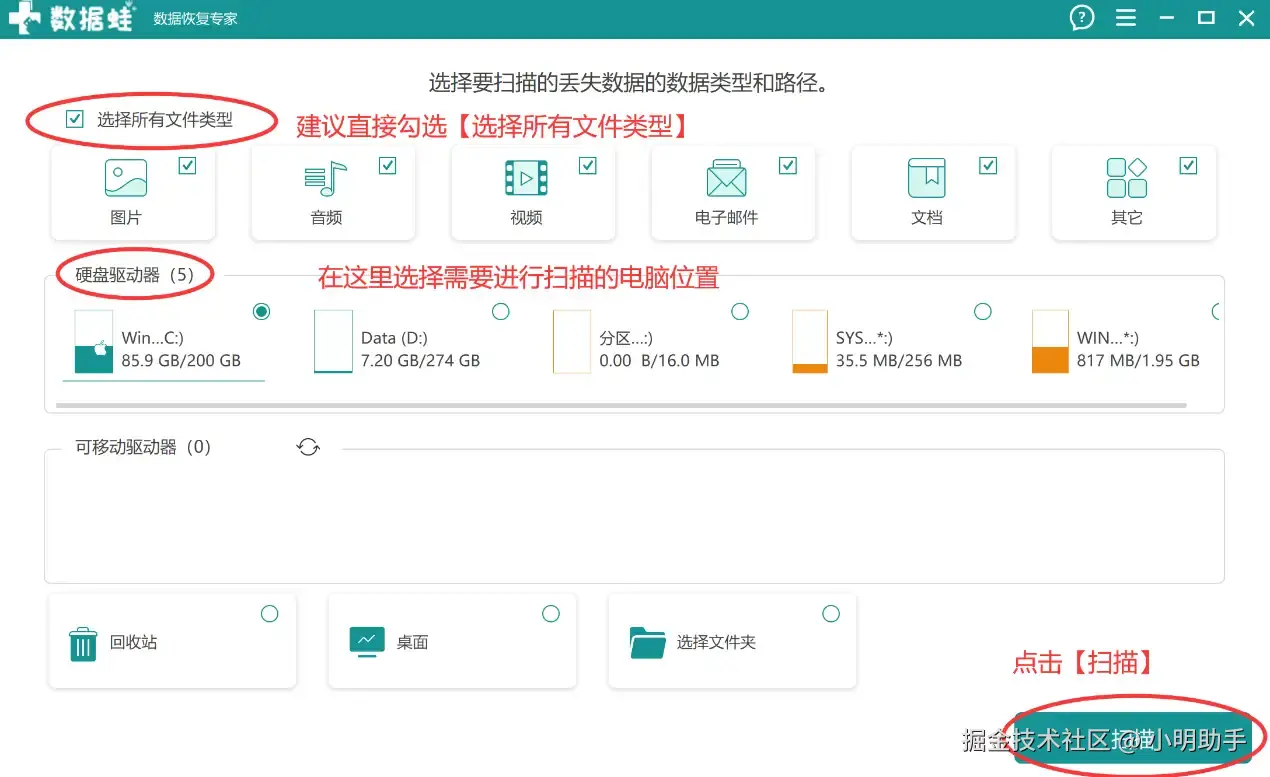 使用数据 蛙恢复专家进行数据恢复的流程如下:
