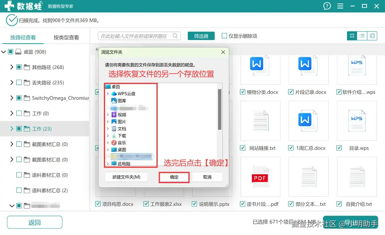 第3步:在最后再为恢复的文件选择需要存放的位置。
