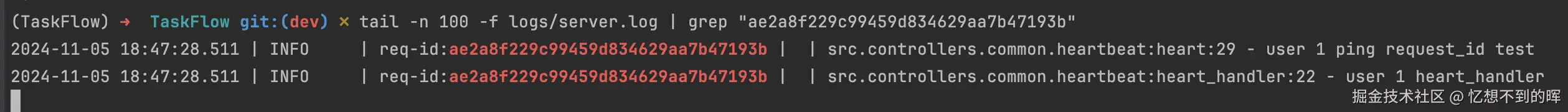 然后根据链路标识查看完整的日志上下文