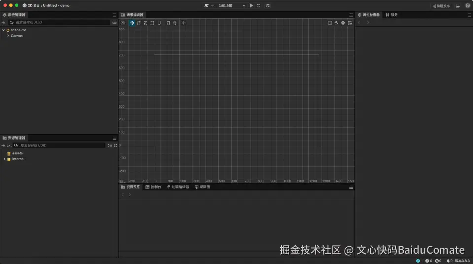 在 Cocos Creator 中新建一个空的2D项目,并等待初始化完成