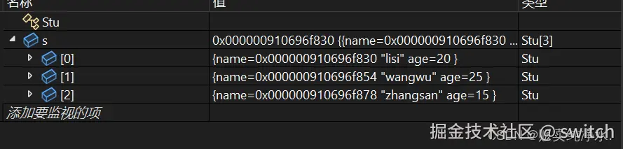 通过监视窗口查看排序结果
