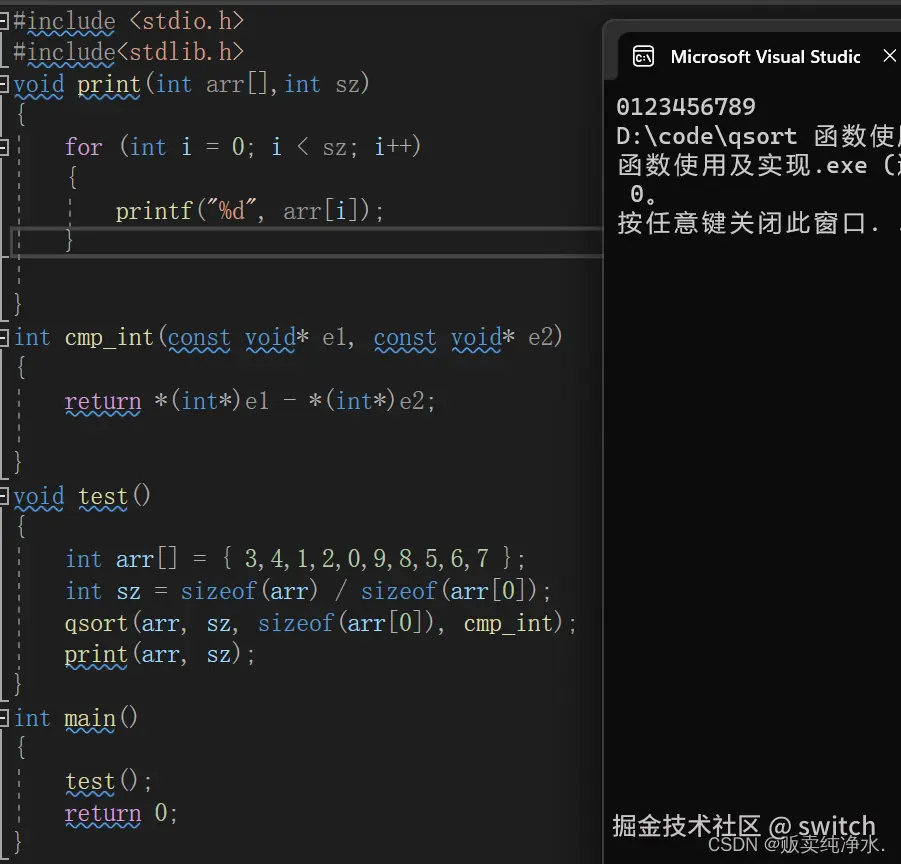 下面举例实现qsort函数排序一组整形数据