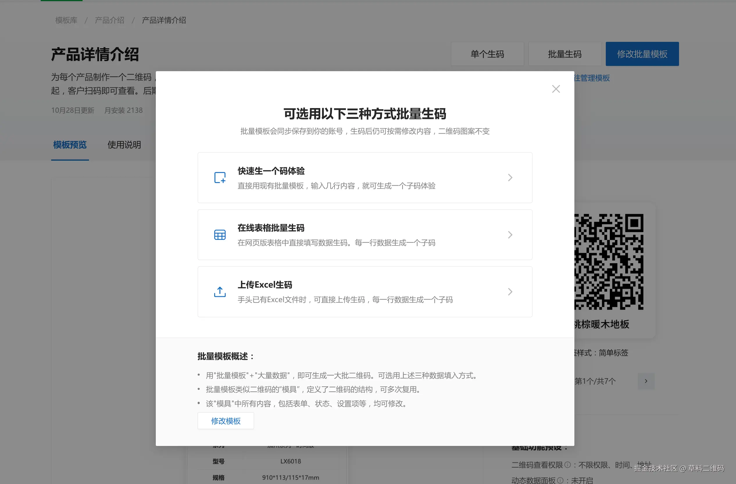 同时,大家也可以通过 直接上传excel表格,或是填写在线表格 的方式进行批量生码。草料支持批量上传产品图片和说明文件等,生码更方便快捷。