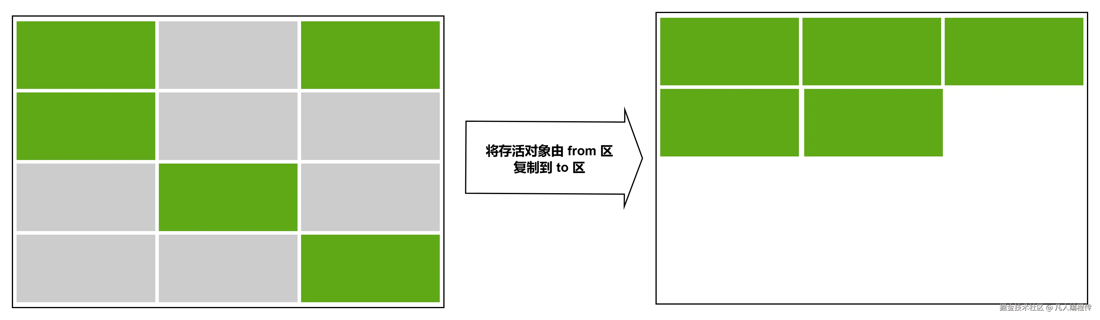 - 如果可达对象比较多,垃圾对象比较少,那么复制算法的效率就会比较低,所以新生代特别适合复制算法,因为新生代的垃圾对象比较多(但也不绝对)。