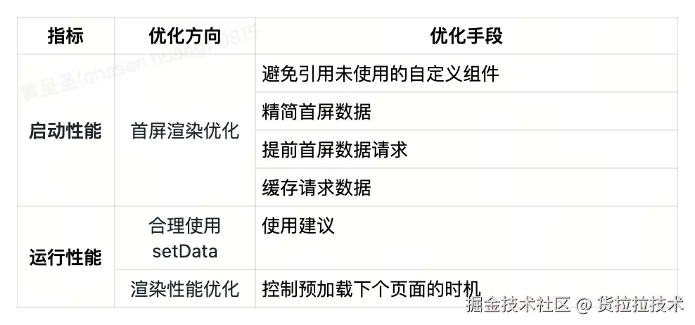 实践总结:渲染优化优先建议骨架屏,做了骨架屏这部分可以优先级放低,有时间再处理。setData 的处理逻辑使用第三方框架已经有较好的 diff 逻辑。