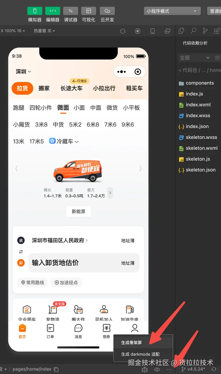 - 成本稍高:使用微信开发者工具提供的能力,一键生成骨架屏,该工具适配不好,需要自己再对结构进行删减,保留有效代码。