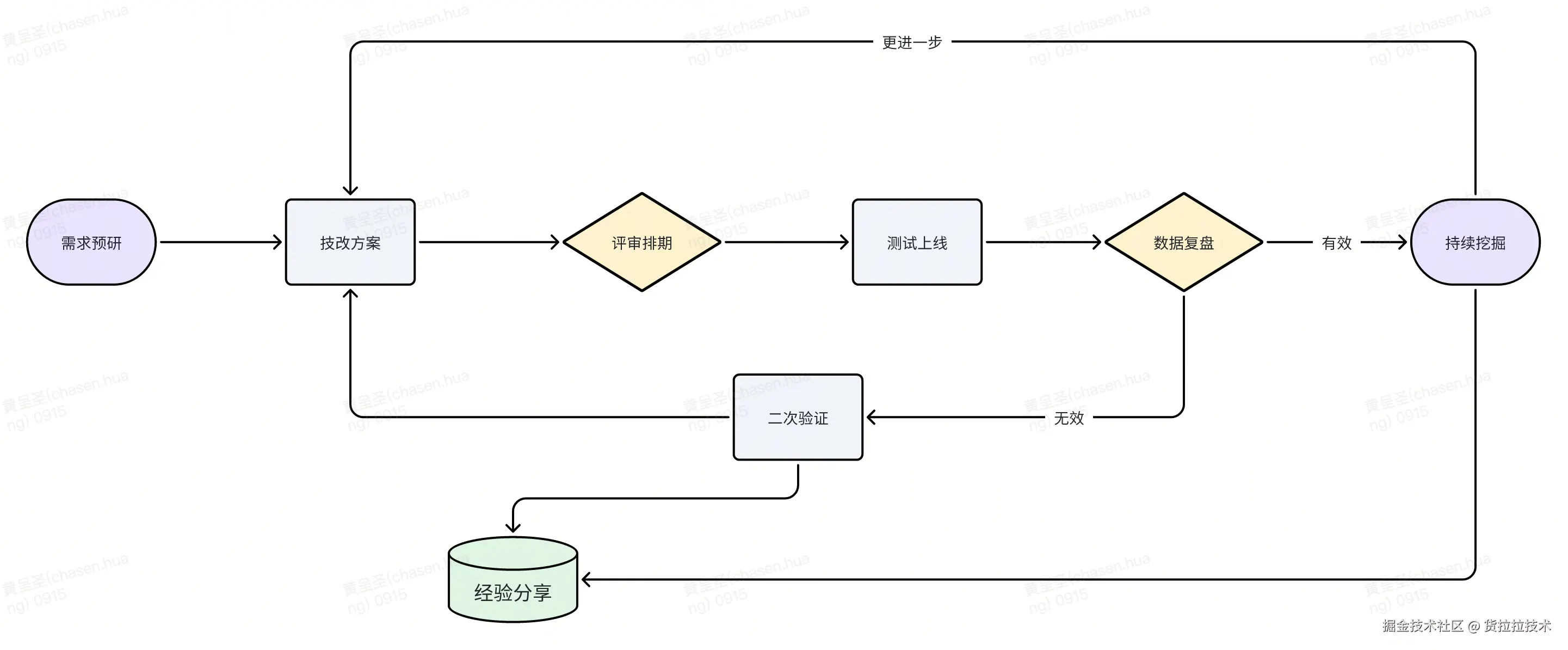 在本次专项中,写代码反而是最容易的事情,如何持续性的在高频业务迭代中推进技术优化需求的落地才是最大的难题。简化技改需求流程图如下: