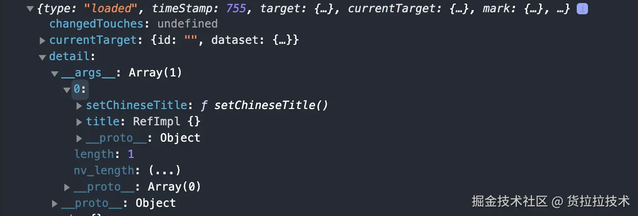 代码解释: unWrapEvent:由于 second-title 在页面上渲染的时候,经过了原生占位组件加载,会形成以下的结构,需要对事件做简单的 hack 处理,这个属于编译的处理逻辑,不在本次展开,大家写的时候自己打印看一下即可。
