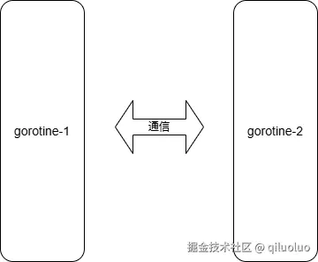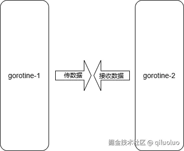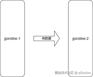 有两个goroutine,其中一个发起了向channel中发起了传值操作。(goroutine为矩形,channel为箭头)