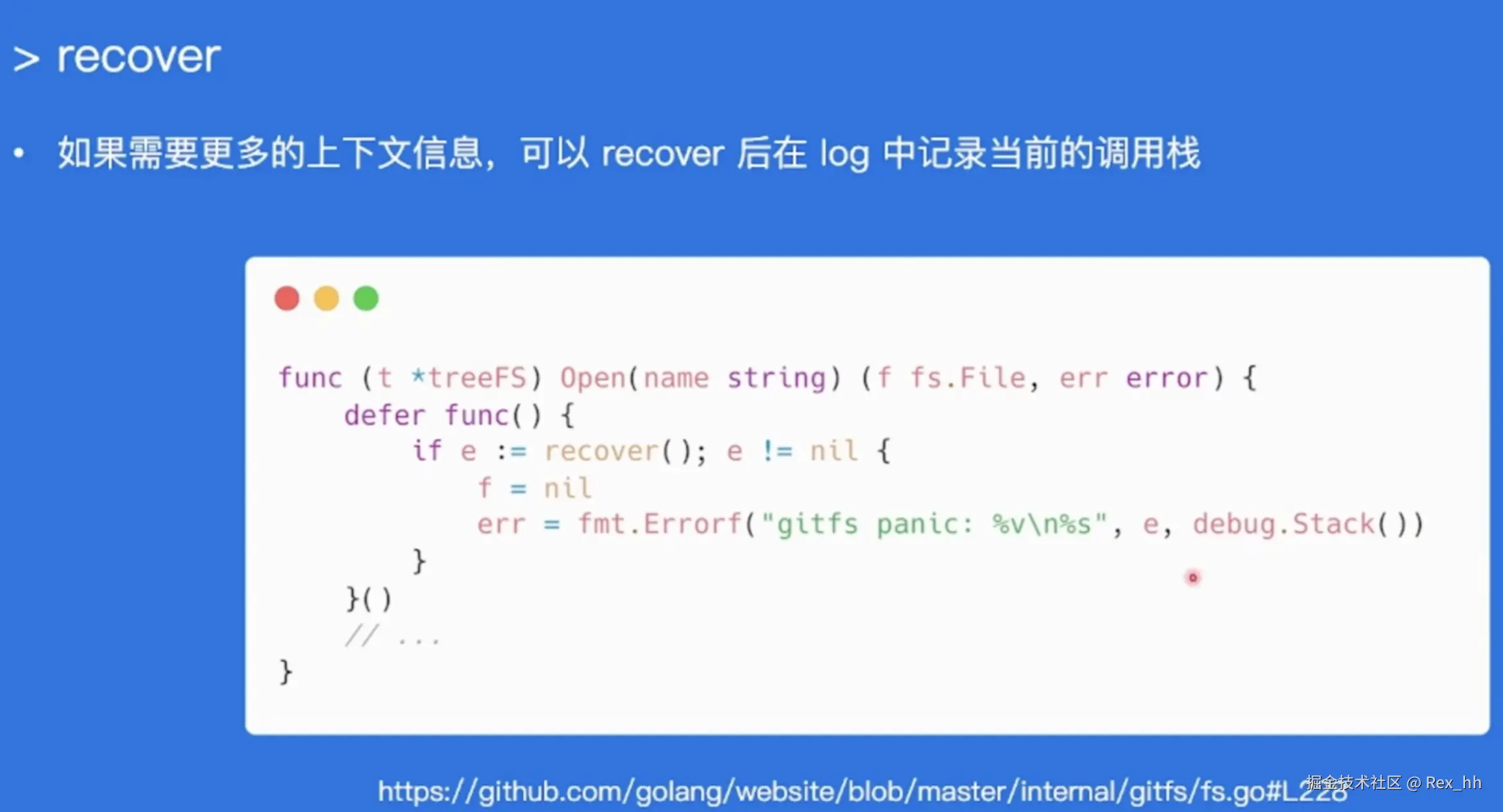 - 若问题可以背屏蔽或解决,建议使用 error 代替 panic