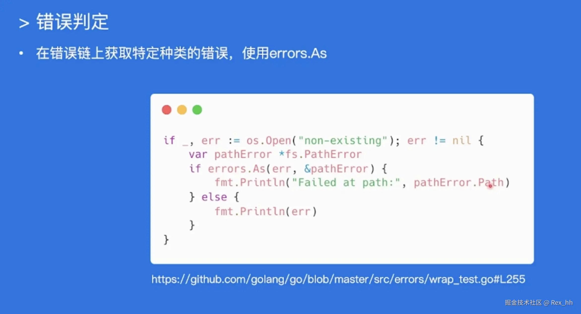 - 简单错误如果有格式化的需求,使用 fmt.Errorf