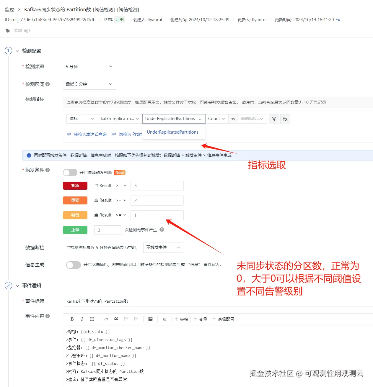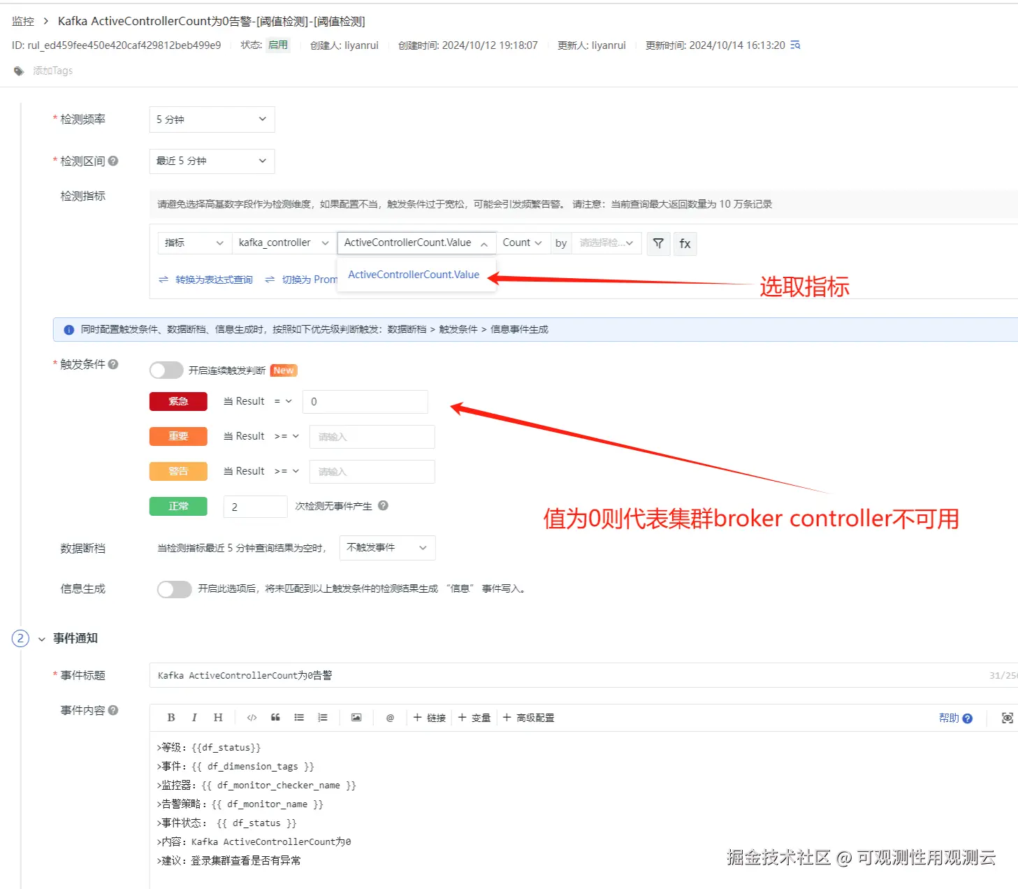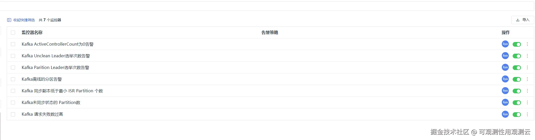- 维护服务的高可用性:Kafka 通过副本机制来实现高可用性。监控副本同步状态和领导者选举,可以确保在节点故障时,相关的分区能够快速进行领导者选举,最小化服务中断。