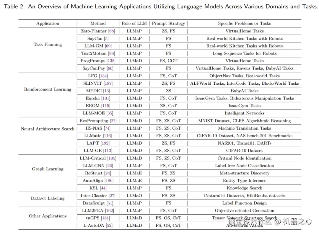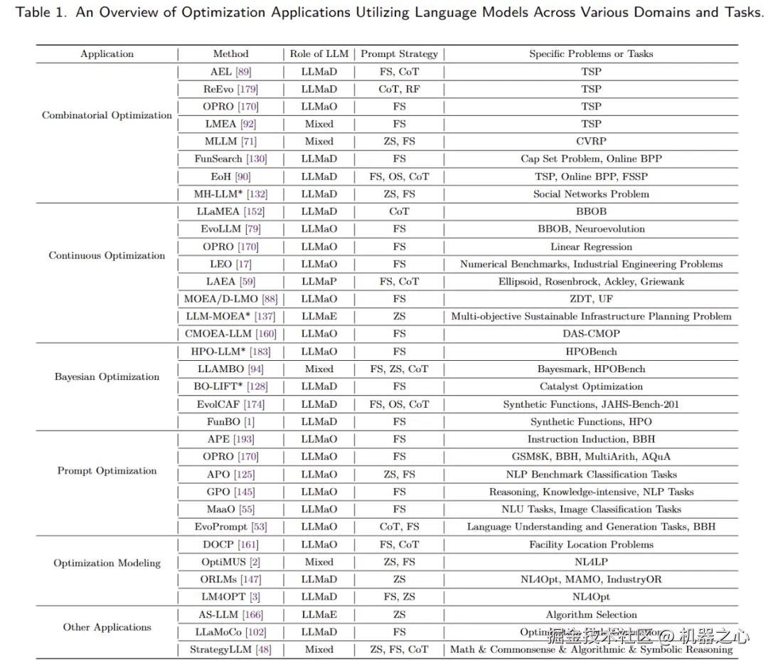 我们整理了四个主要的应用领域:1)优化,2)机器学习,3)科学发现,4)工业。其主要工作按照应用类别、方法、大模型结合范式、提示词策略和具体应用问题进行了分类罗列。具体介绍可以在全文中查看。