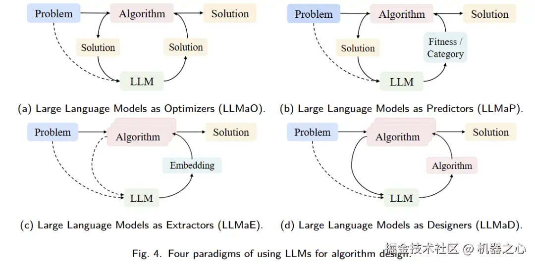 LLM4AD 的挑战和未来方向:我们不仅仅是对现有文献进行总结,而是对当前关于算法设计中大型语言模型(LLMs)研究的局限性进行了批判性分析。此外,我们提出了潜在的未来研究方向,包括开发领域特定的 LLMs、探索多模态 LLMs、促进人与 LLM 的互动、使用 LLMs 进行算法评估和理解 LLM 行为、推进全自动算法设计,以及为系统评估 LLM 在算法设计中的表现进行基准测试。这一讨论旨在激发新的方法并促进该领域的进一步发展。