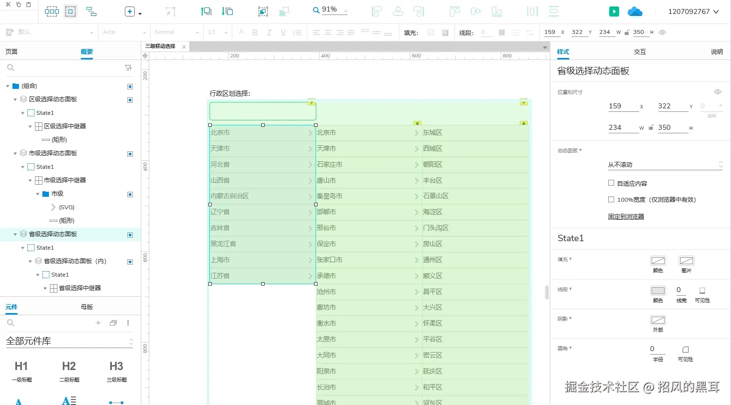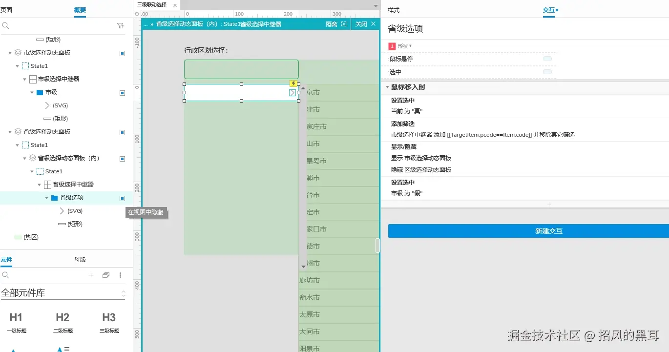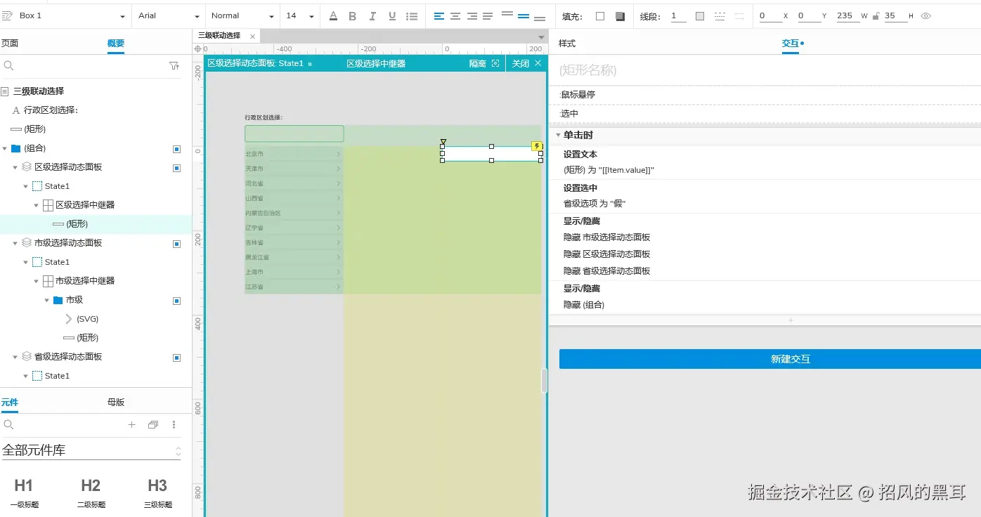 通过以上步骤,你可以使用Axure RP中的中继器设计一个功能完善、交互流畅的三级联动选择器。这个选择器可以应用于各种需要地址选择的场景,如电商平台、数据筛选等。