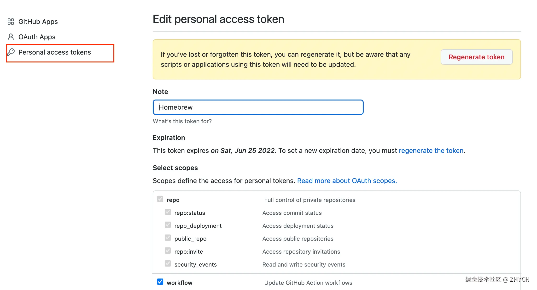 https://github.com/settings/tokens/new?scopes=gist,repo,workflow&description=Homebrew