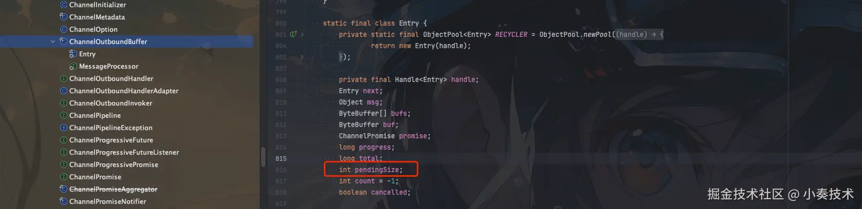 由于ChannelWritabilityChanged是由许多个Entry组成的,每个Entry都有一个pendingSize,pendingSize记录了堆外内存(待发送数据) + 堆内内存(Entry对象自身占用内存)