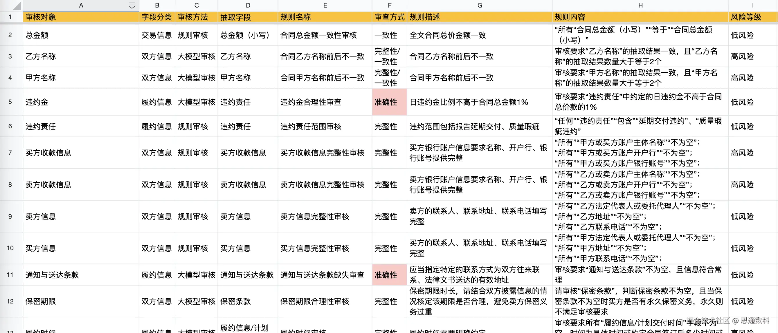 某银行合规部在日常审查中需审核客户协议的合规性。合规性的审查规则要求可客户自定义标准,例如: