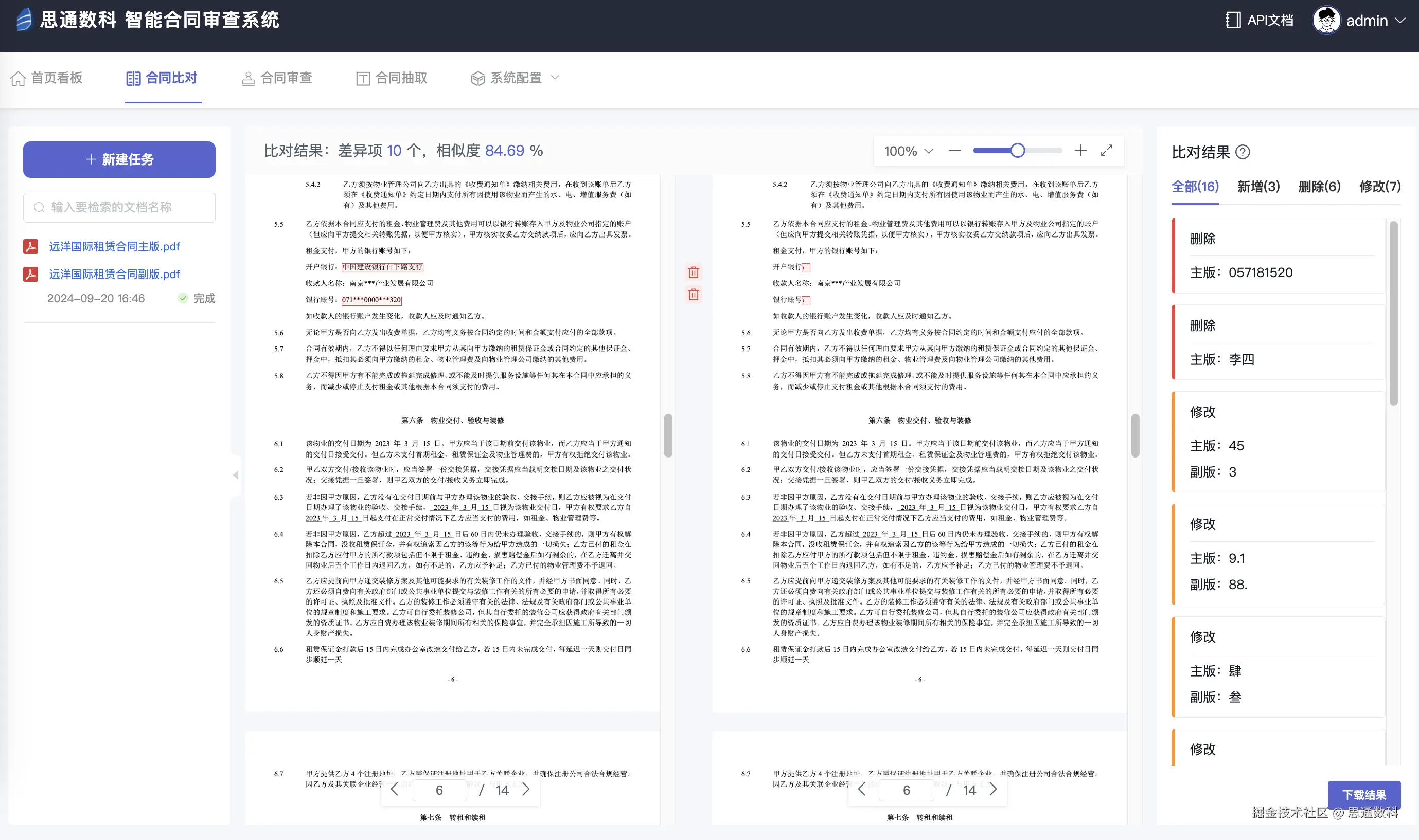 - 某上市公司的内审团队每年需审查数千份供应链合同。该公司通过平台的API与合同管理系统集成,实现了自动化文档对比。思通数科AI多模态平台在支持100页大文件的处理上,确保了文件差异性显示的实时性。比对完成后生成的报告提升了文件审查流程的透明度,并减少了40%的人力投入,提升了合规保障。