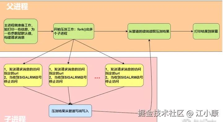 下面是源码分析中 Webbench 的架构图: