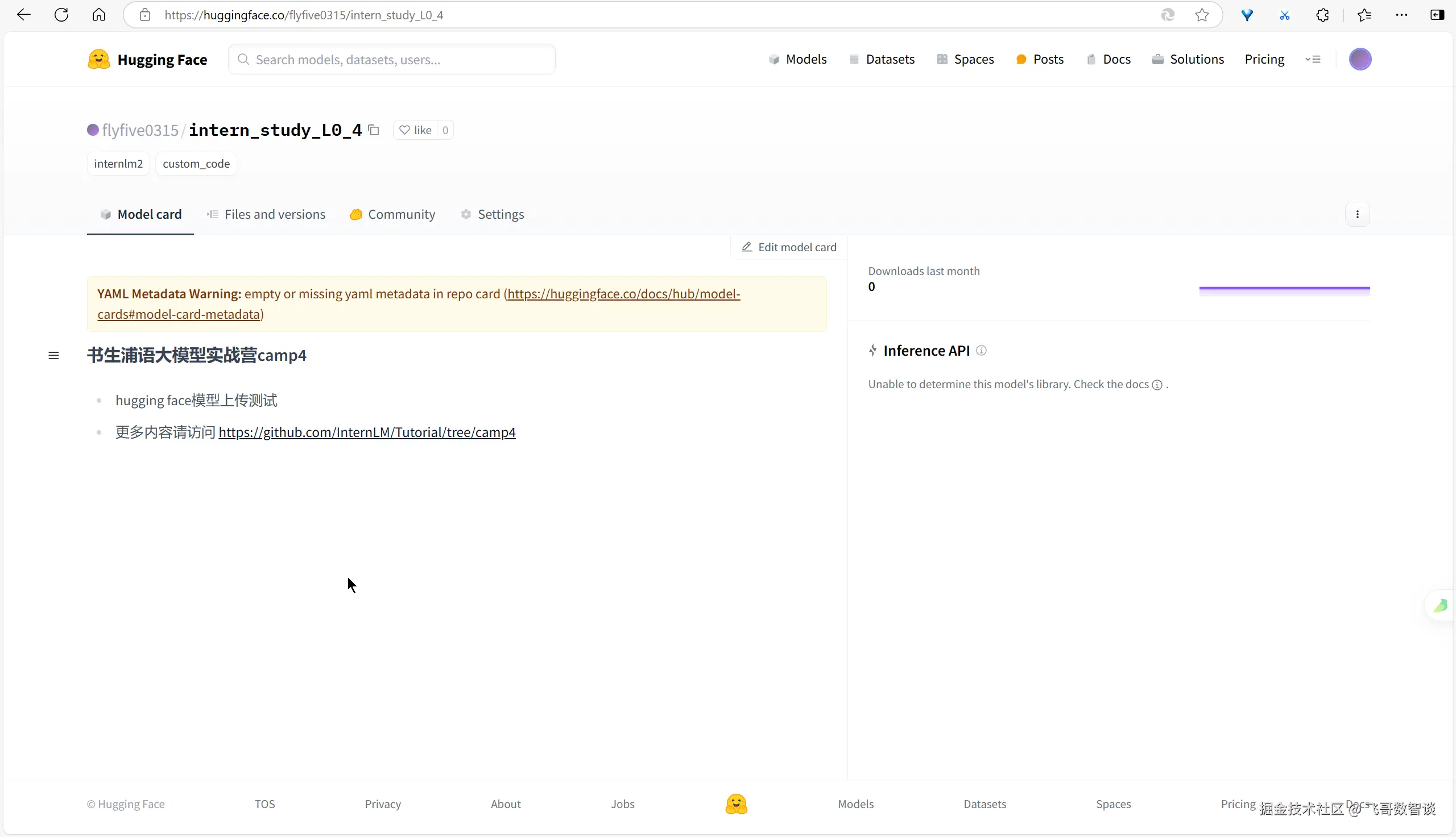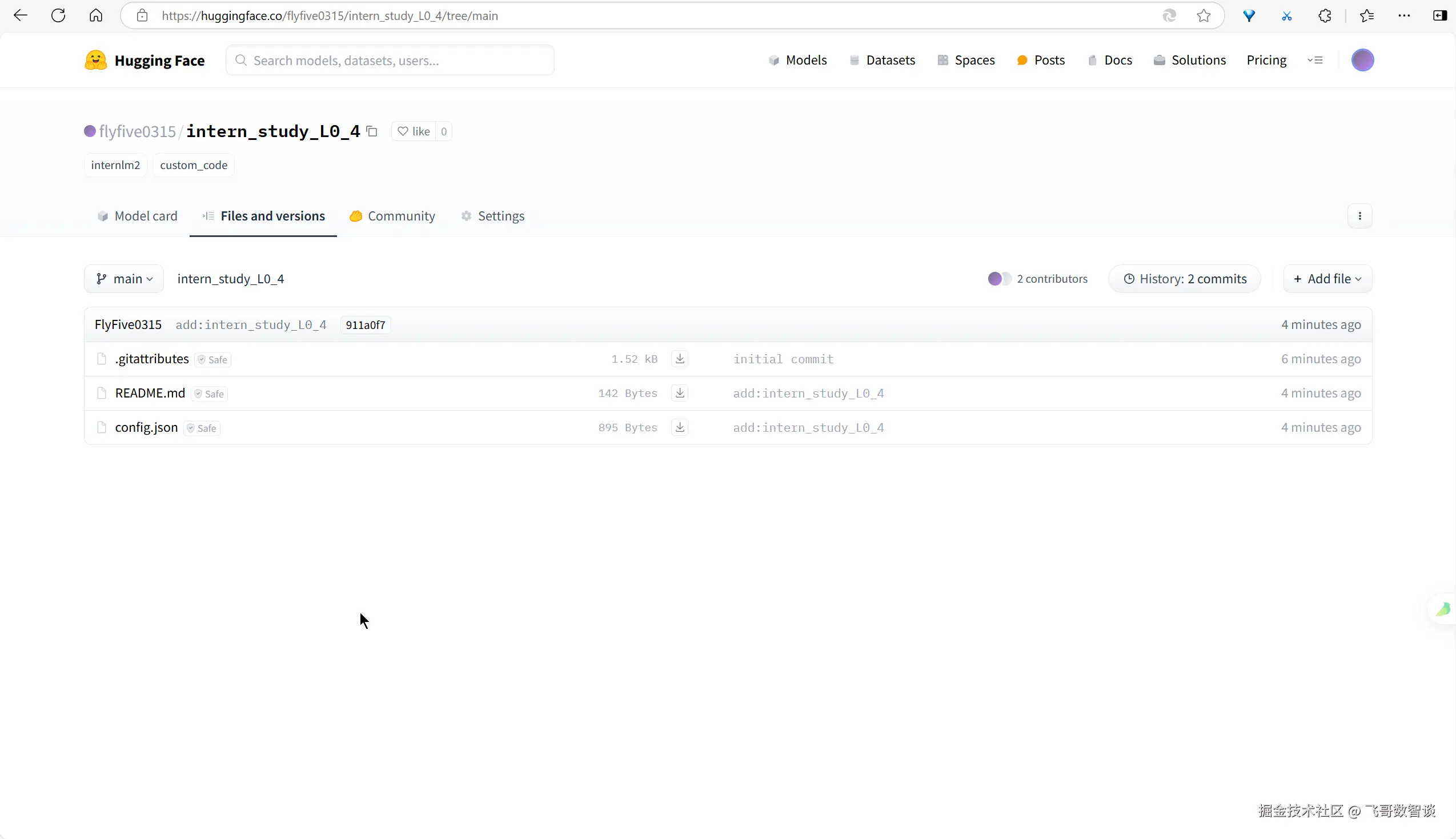 目标:将下载好的 config.json 文件上传到Hugging Face平台,并截图。