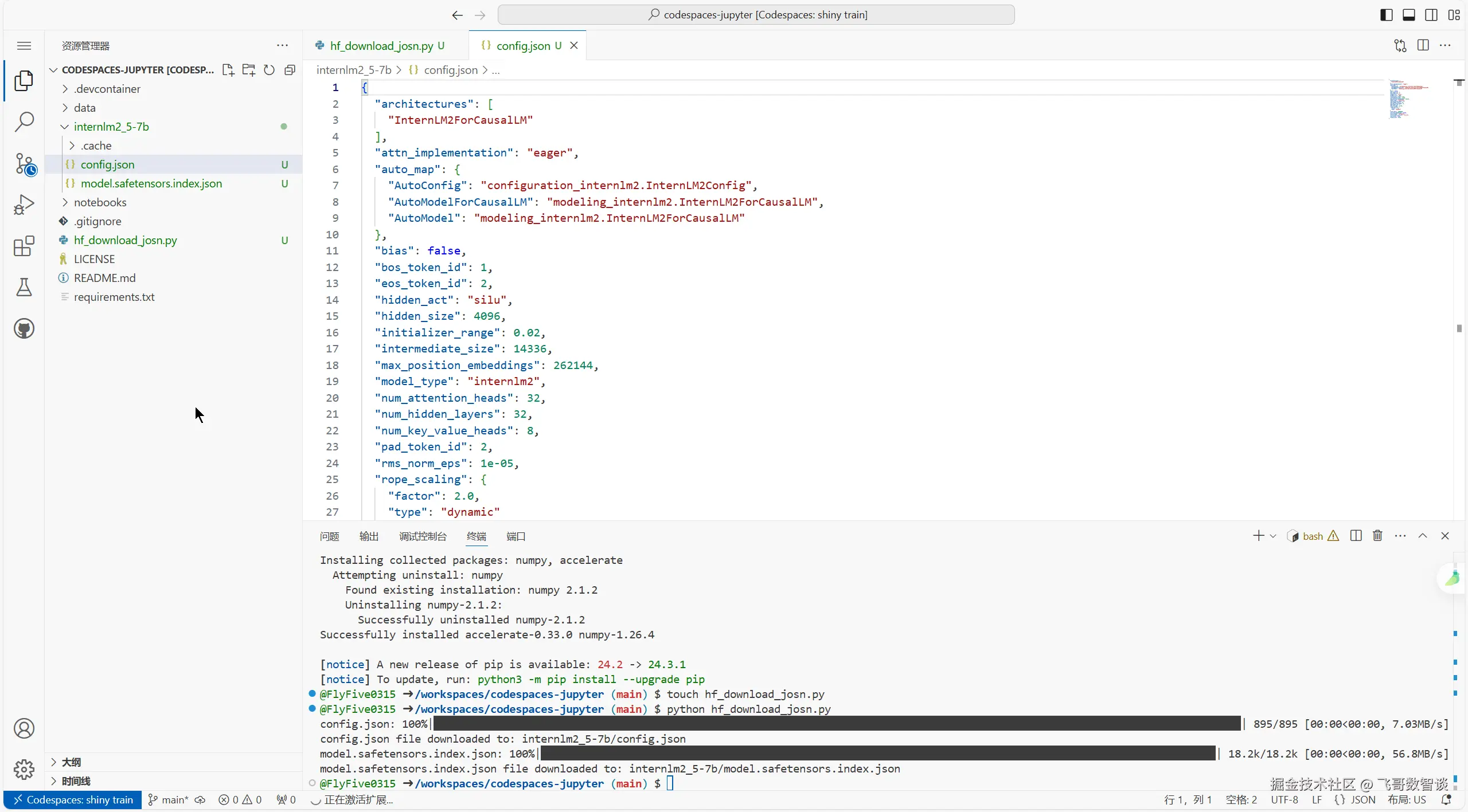 - 新建hf_download_josn.py 文件,并运行,该文件是为了下载模型文件。