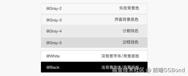 常用于文本、背景、边框、分割线等,需要考虑深色背景和浅色背景的差异,可以选择同一色相控制透明度变化,用来表现不同的层级结构