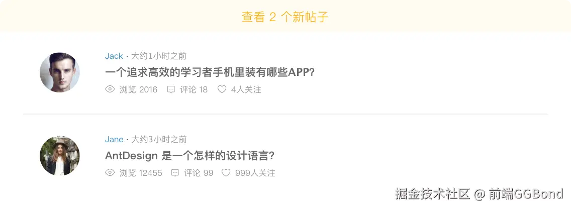 e. 定时刷新:无需用户介入,定时展示新内容。如:新增的列表项『高亮』,持续几秒后恢复正常。