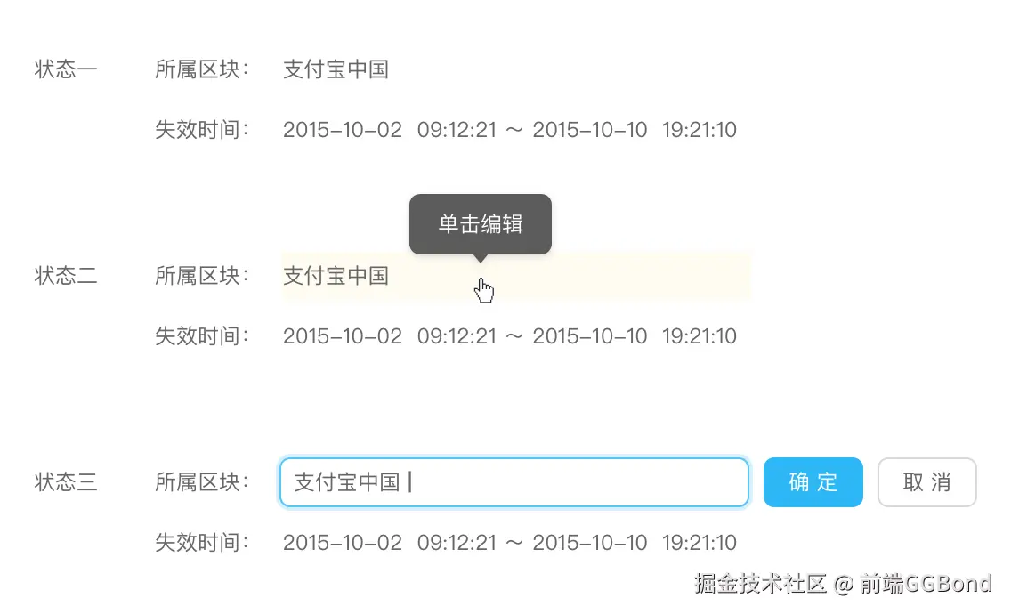 a. 单字段行内编辑:当『易读性』远比『易编辑性』重要时,可以使用『单击编辑』