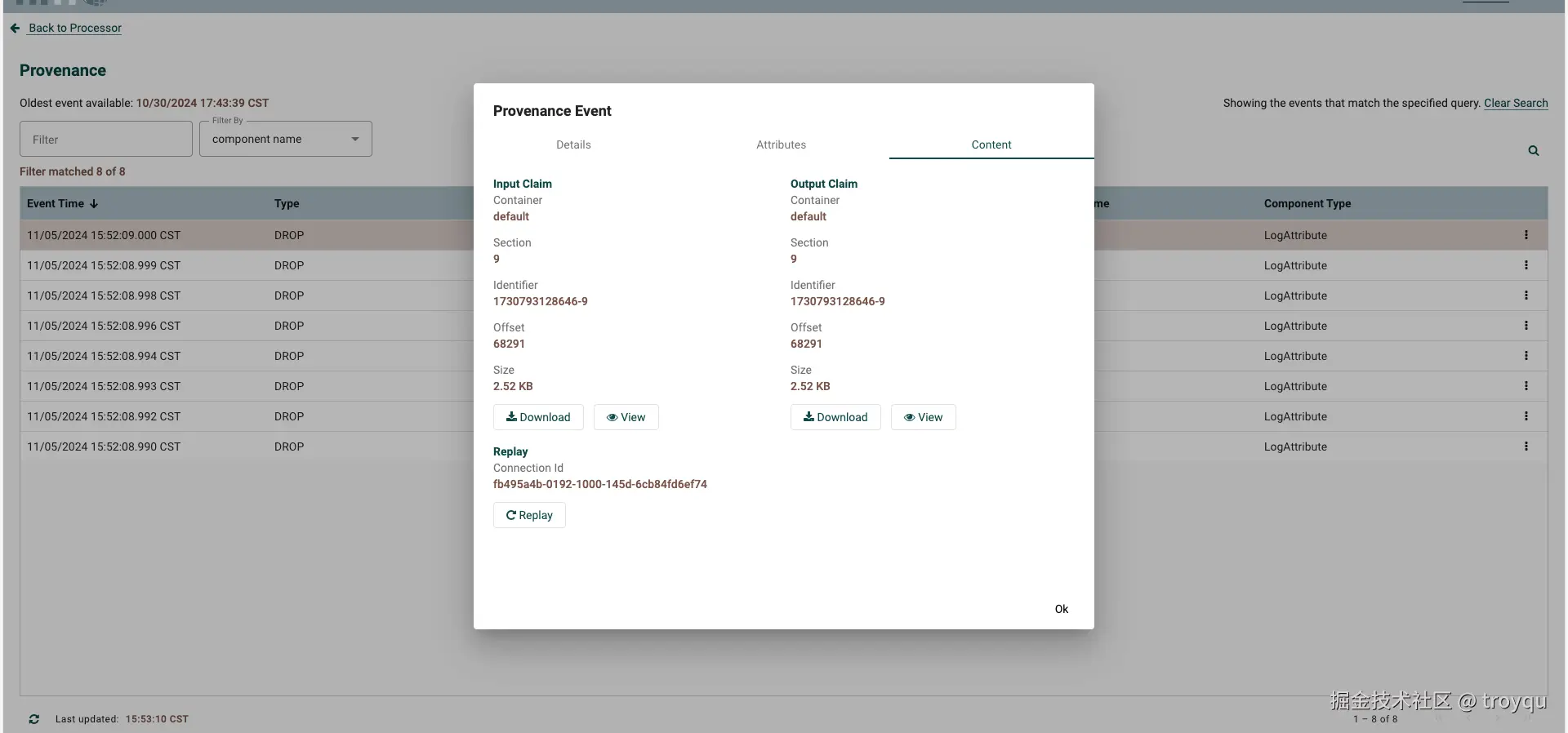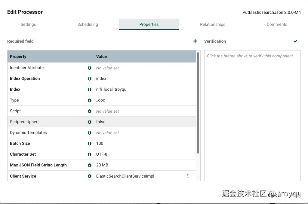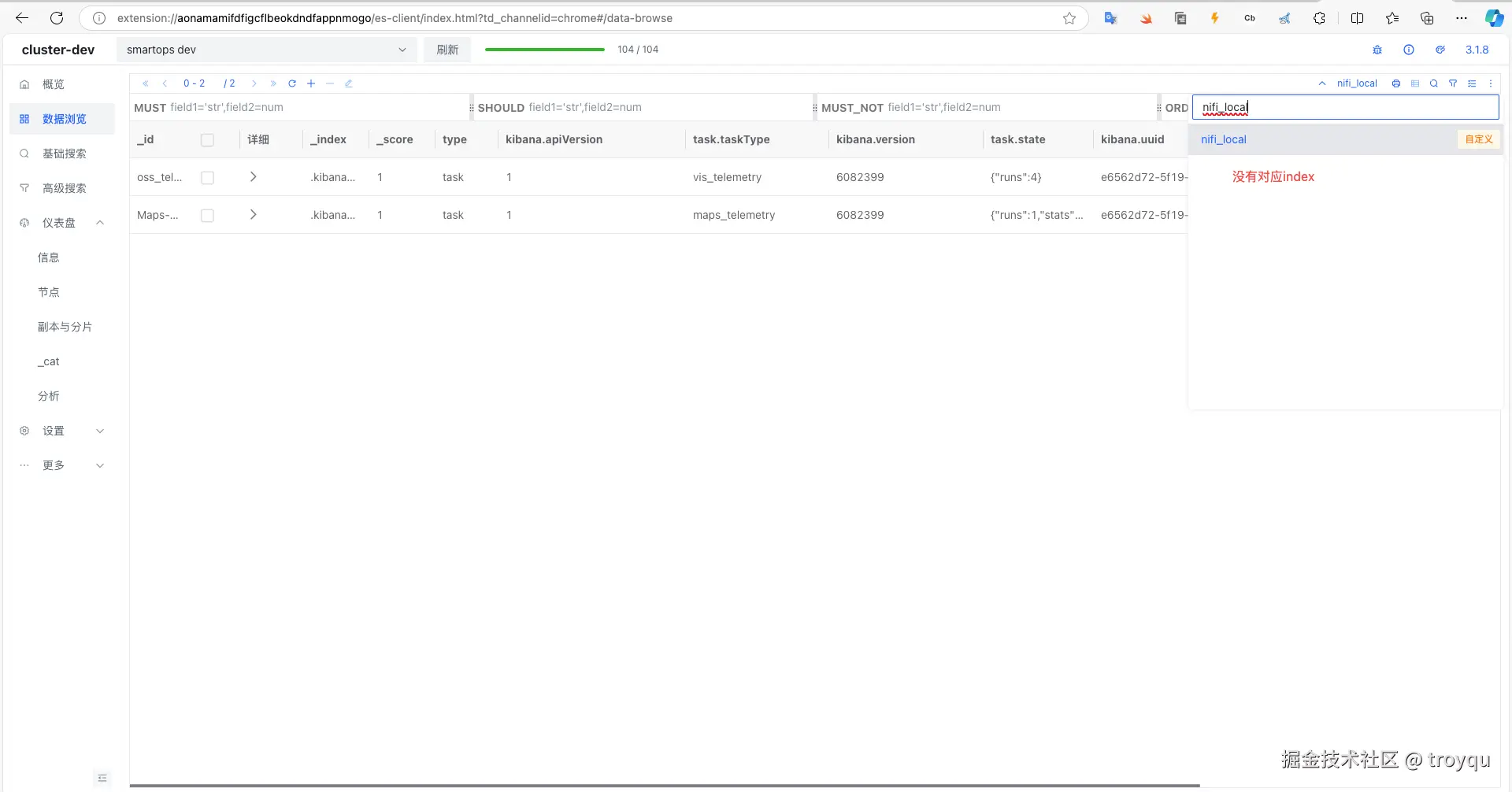 写入nifi_local_troyqu index,对应记录中包含"troyqu"关键字的记录