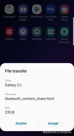 然后您可以在三星手机上找到要发送的歌曲,并通过蓝牙共享它们。稍后,您将在 PC 上收到音乐。