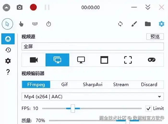 步骤1: 点击使用数据 蛙录屏软件,然后在加载出来的主页面选择合适的录制模式。本文以 “视频录制” 为例。