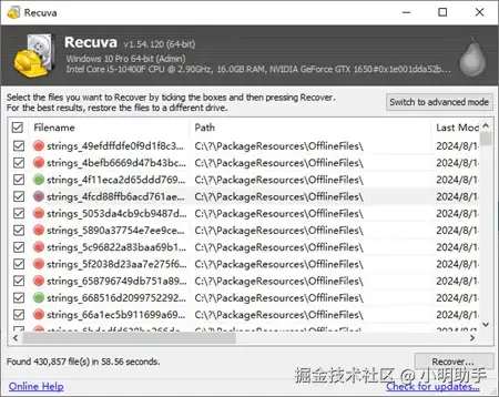 Recuva是一款由CCleaner公司开发的深度视频恢复软件,这款软件能够通过扫描硬盘、存储卡、外部驱动器等存储设备找回在里面没有被新数据覆盖的旧数据,如果删除视频没有被新数据给覆盖,那么也可以尝试使用Recuva进行删除视频恢复。