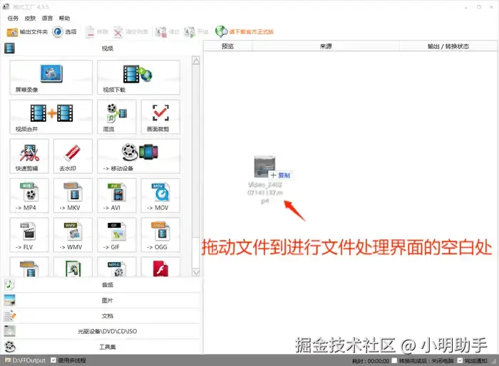 第一步:打开格式工厂软件,拖动文件到进行文件处理那个界面的空白处。