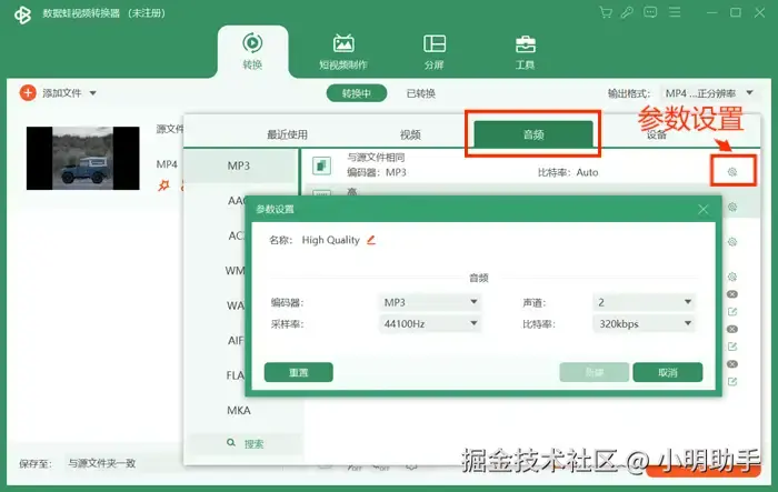 数据 蛙视频转换器界面简洁,操作简便,支持批量进行音频提取,转换速度快,还能让用户进行高度自定义的参数设置,是快速进行视频提取音频的绝佳选择。以下是数据 蛙视频转换器的简要教程: