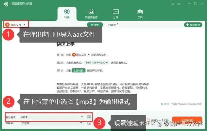 aac转mp3方法一:数据 蛙视频转换器